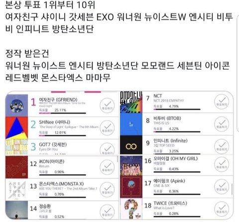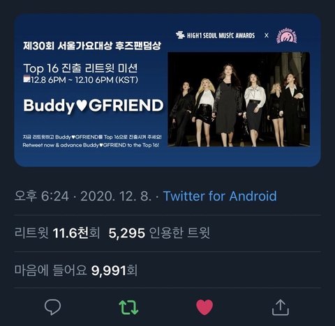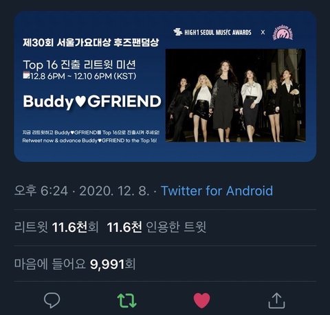 그런데 오늘 또 주작이 벌어졌어. 알티 제일 많은 TOP16 아티스트들이 뽑혔는데 여자친구는 분명 TOP16에 뽑혀야 했는데 인용수가 누락 됐고 팬들은 난리가 났지. 아니 애초에 누락이 됐어도 뽑혀야 하는 알티와 인용숫자들이었는데 안뽑힌거야