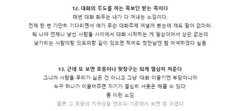 너가 자꾸 관심도 없는 얘기 던지는데도 ㅎ,ㅋ 라도 붙이면서 반응해주는 게 고마운 줄 알아 좀더 귀찮으면 안읽씹이니까.