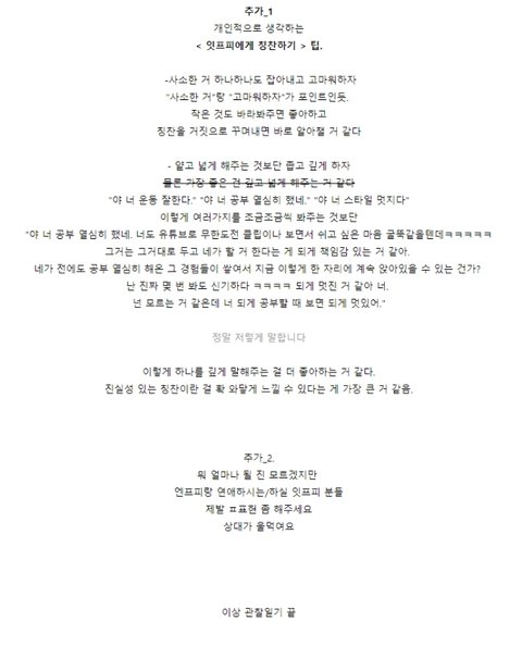 소크라테스가 그랬는데, 모든 언행을 칭찬하는 자보다 결점을 친절하게 말해주는 친구를 가까이하래!