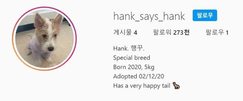 로제가 행크라고 지은건가 이름도 귀여워ㅠㅠㅠ