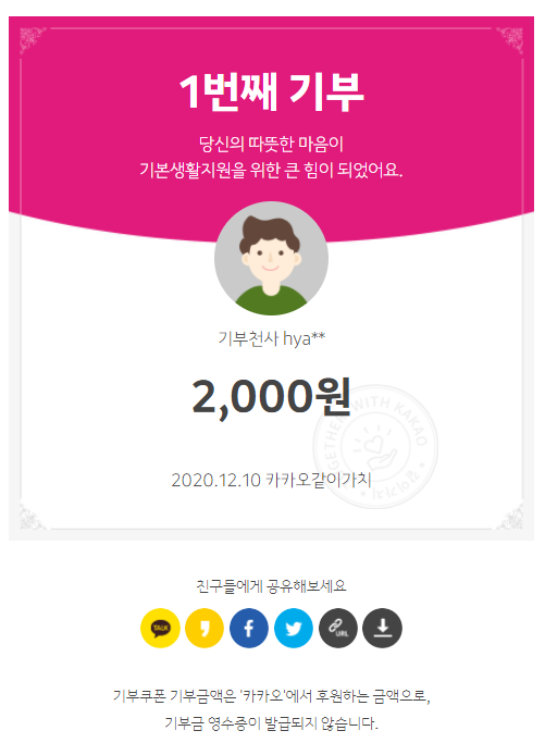 공유하기 클릭으로 이 멋진 기부 경험을 주변의 사랑하는 사람들과 함께 나눠요