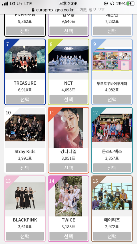 인기 많아도 여돌이라 팬덤큰 남돌 투표 못이기니까 그렇지뭐 블핑이 위에 있는 애들 전부보다 인기 없는건 아니잖음 그리고 방탄 언급좀 하지 마라 진짜ㄱㅋ
