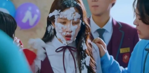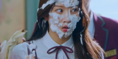 반 친구가 실수로 여주에게 케잌을 엎어버림