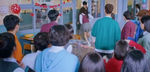 극 중 반에서 다같이 친구와 친구 남친 100일 파티를 하던 중