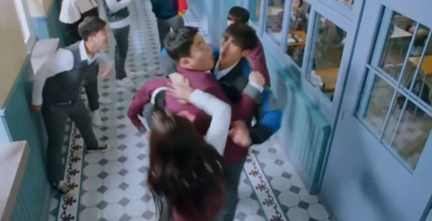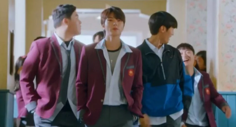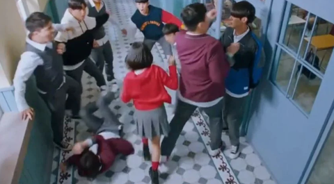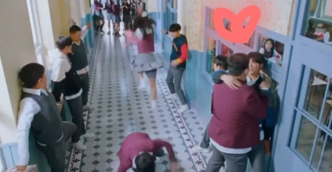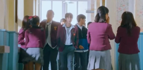 여주가 뛰쳐나감과 동시에 복도 끝에서 걸어오는 섭남과 친구들