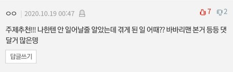 오늘도 추천받은 주제로 글 가져와봤어! 다들 댓글 많이 달아주라❤ 그리고 혹시 보고싶은 주제 있으면 주제추천글 댓글로 적어줘 글 링크 두고갈게!! ฅ^._.^ฅ