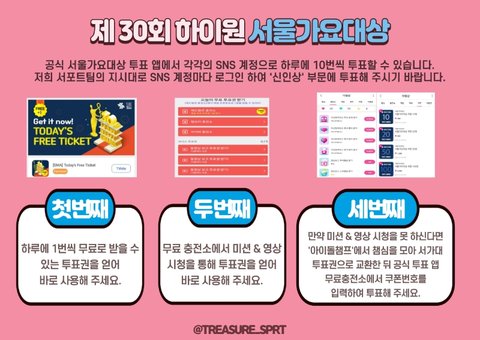둘 중 아무 방법이나 써서 하루에 SNS 각 계정마다 10번씩 신인상 부문에 투표해야 해