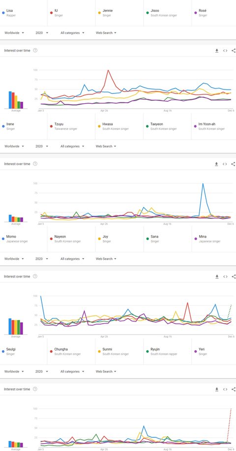 2020년 전세계에서 가장 많이 검색된 케이팝 여자아이돌 TOP20