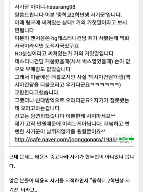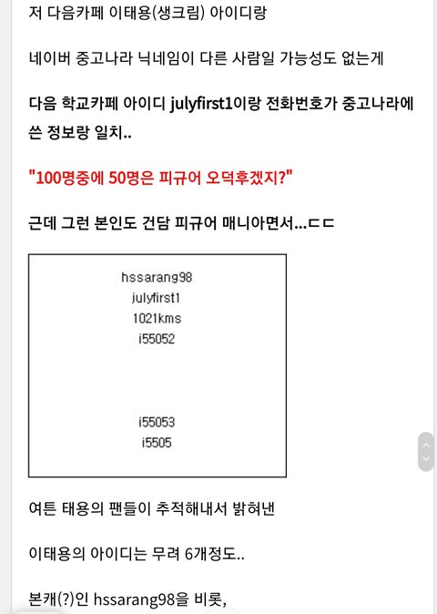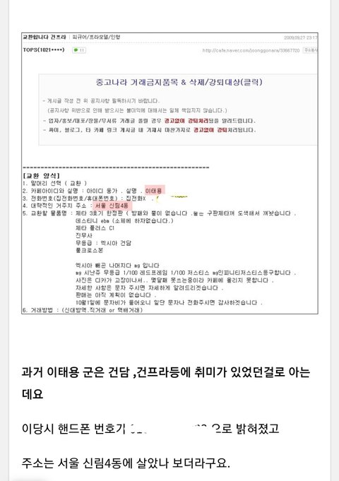 1.사기 거래자가 태용인 이유 = 이름 생일 사는 동네 일치 반카페 아이디 일치