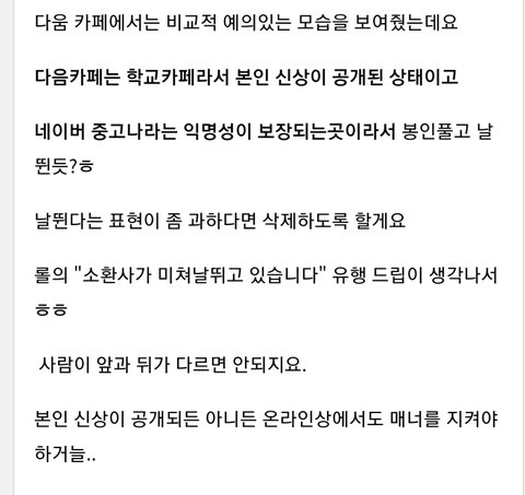 9.그러고 학교랑연계된 다음카페(네이버랑 아이디일치함)에서는 다르게 행동