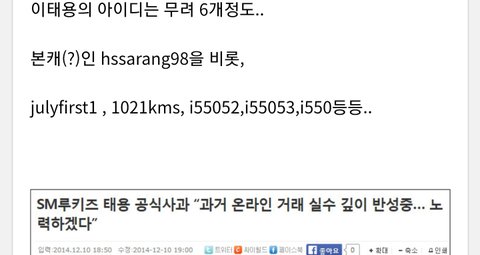 이제 달라졌다고 하던가 슴도 인정했던 이런 범죄를 없던일로 루머억까 취급하는건 반성할 태용한테도 안좋은일일듯