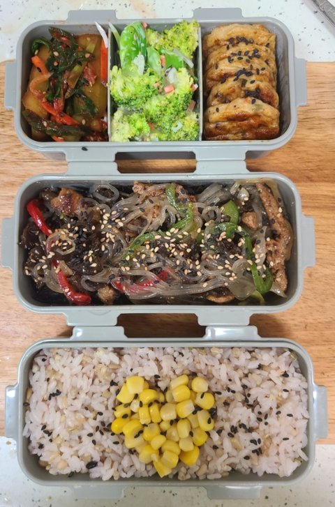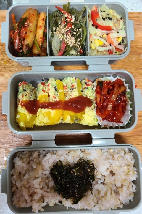 워낙 탄수화물 좋아하고 반찬은 많이 안먹는 편이라 웬만하면 탄수화물 적게 싸고 나물반찬 많이 싸줘요