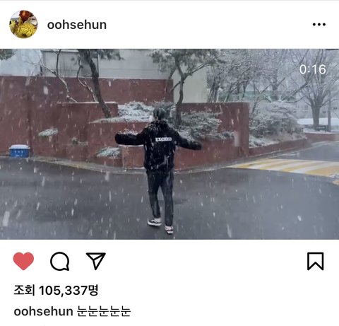 세훈이는 진짜 애기임 애기... 눈 온다고 신나서 거품이랑 인별로 알려주네