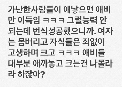 그것갖고 또 '씨받이냐?' 후려칠 인성과 능력이면 고마 애 낳지 마소.
