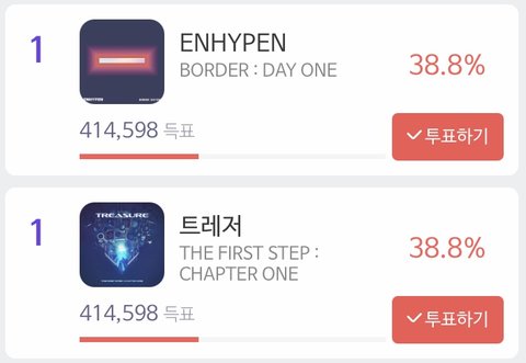 본진 투표하러 갈때마다 순위가 바뀜ㅋㅋㅋ 그냥 둘 다 신인상 받는 게 맞는 거 같음