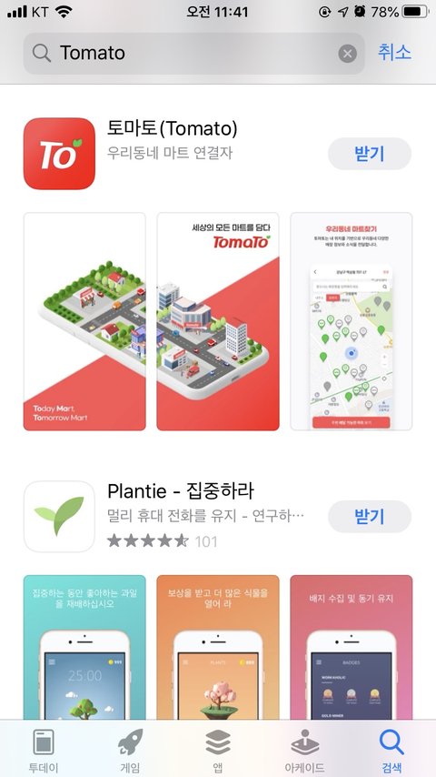 카메라를 켜고 밑의 QR코드를 찍으시면 토마토 어플을 바로 찾으실 수 있어요!