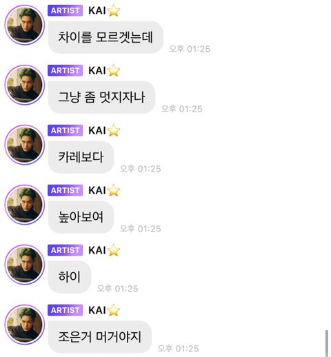 하지만 채팅 시작하자마자 카이 첫 채팅