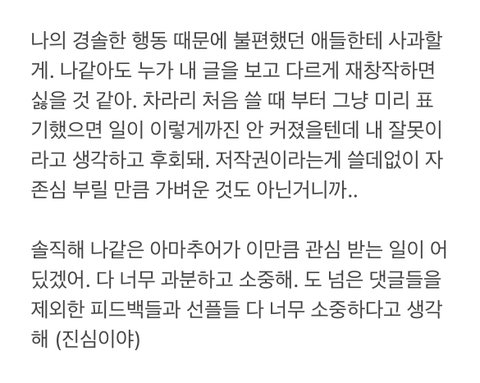 앞으론 사소한 것 하나하나 저작권에 대해 의식하고 신경쓰면서 살아갈게