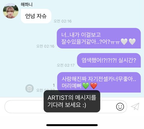 해찬아.. 동혁아.. 자기야.. 사랑해........... 아침에 일어났을때 보다 자기전에 보내는게 더 치인다.. 이게 얼마만야..? 아니 사랑해........ 난 지옥에서온 해프.