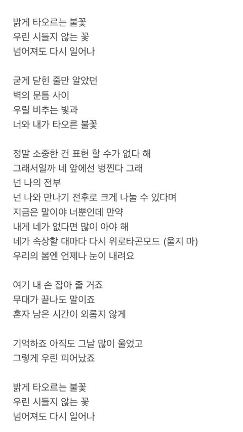 이렇게 예쁘고 멋진 가사로 탄생했어!!