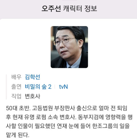 김학선 배우는 <비밀의 숲2> 오주선 ㅇㅇ