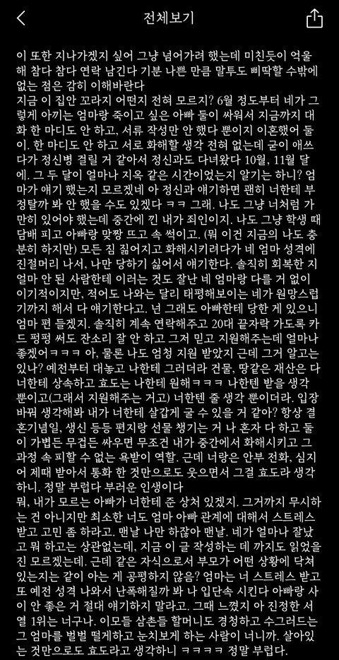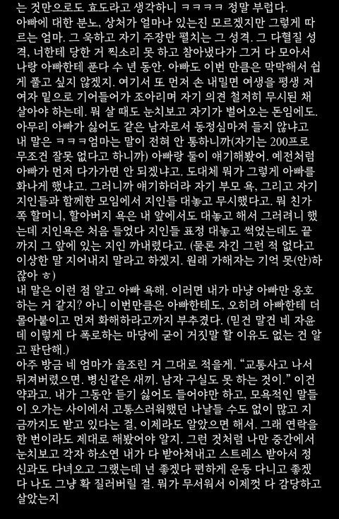 내용도 내용이지만 네 솔직히 사이 안좋습니다 청소년때 방황해서 모든 관심이 저에게 쏠린점 인정하구요 그로인해 동생도 스트레스 받았겠다 어렴풋이 알고는있었는데 이렇게까지 심할줄 몰랐고..