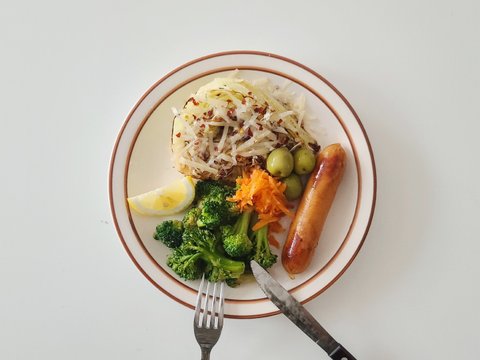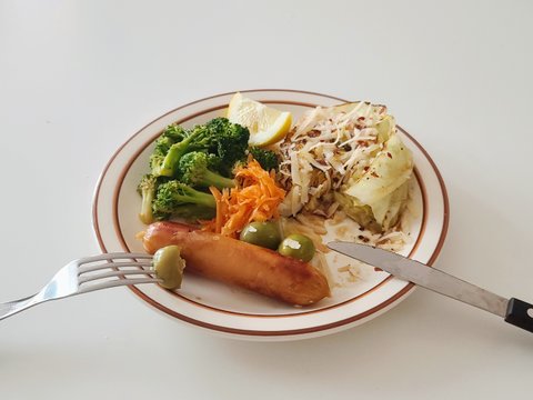 양배추를 부드럽게 구워 닭가슴살 소세지와 먹어요