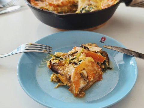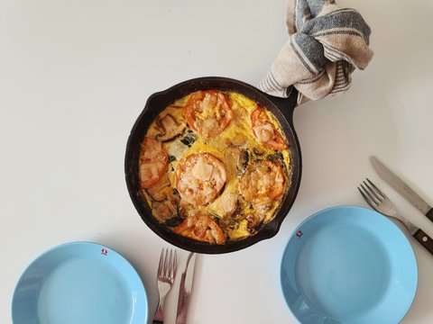토마토와 루꼴라, 버섯, 치즈를 듬뿍올린 촉촉 부들부들한 프리타타