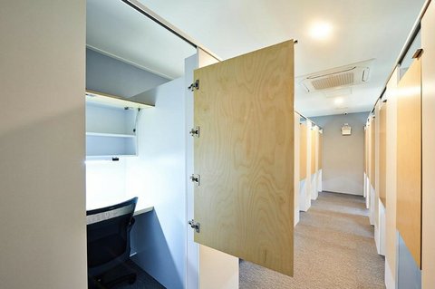 열람실 안에 작은 문이 있는 칸막이로 전부 나눠진 자리야. (사진이랑 똑같이 생겼어.)