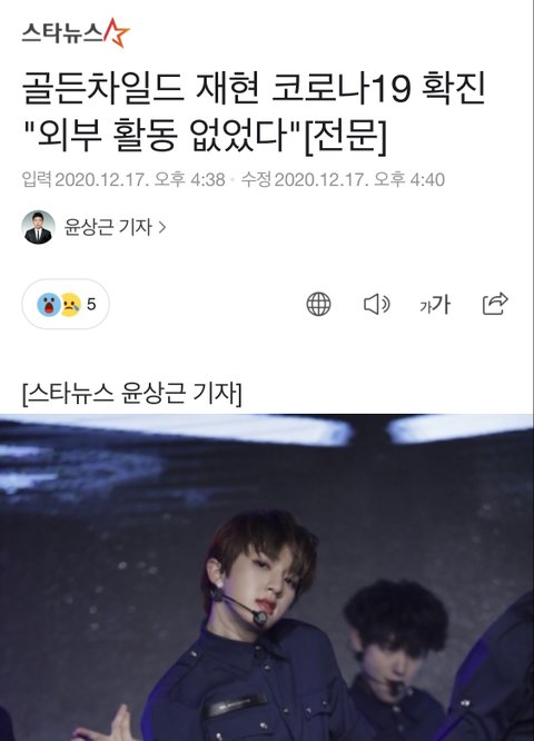 골든차일드 봉재현군이 17일 오전 코로나19 양성 판정을 받았습니다.