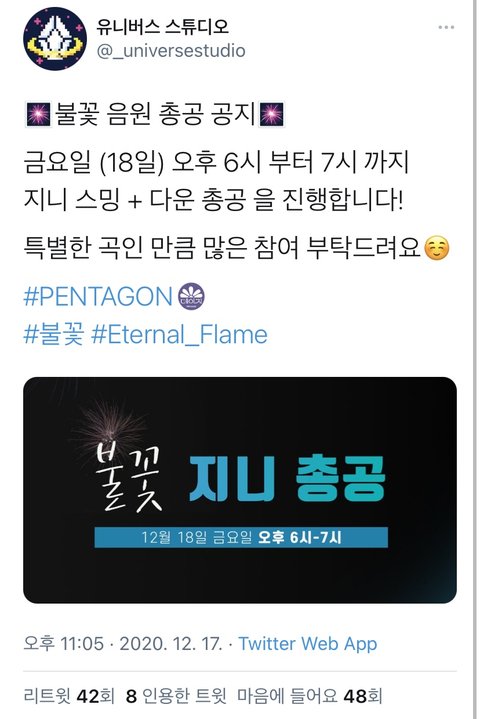 불꽃 음원총공 있대!!!!!!! 저 때 만이라도 스밍 다운 열심히 해서 올려보자!!!!! 우리 모두가 원한 음원이었으니 우리도 노력해보자 제발 ㅠㅠ후이팅!!!