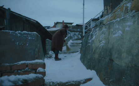 혜자가 병원 앞에서 눈을 쓸고 있었음