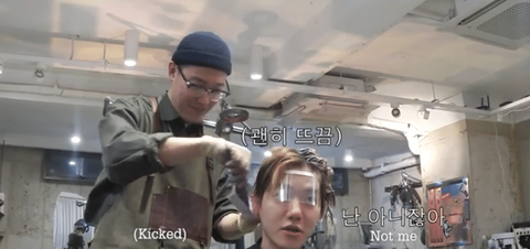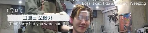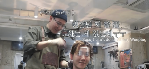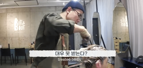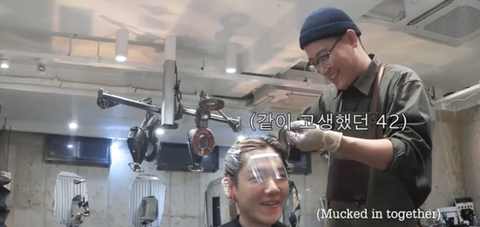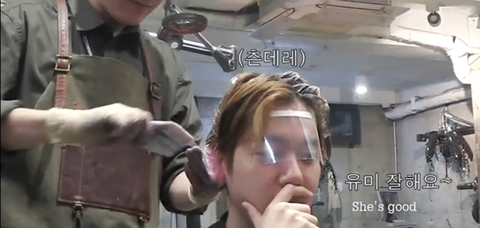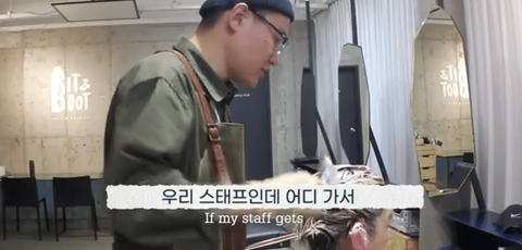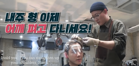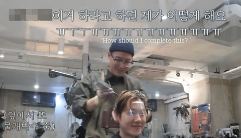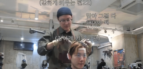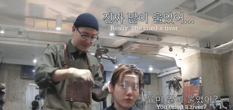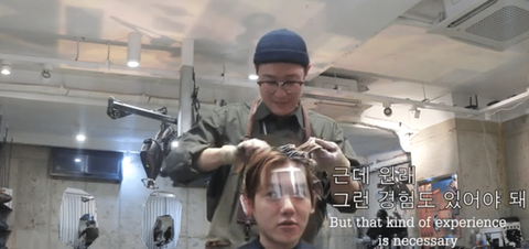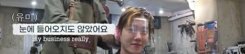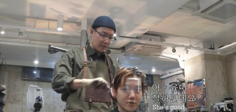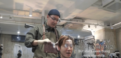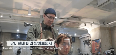 : 요즘 유미(화면엔 없지만 옆에 있음. 헤어스탭)한테 머리 받아보니까 어때?