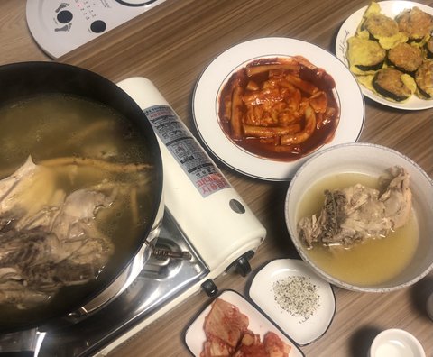 삼계탕을 해봤어요 요즘은 정말 요리하기 쉽고 편하게 팔아서 재료랑 물만넣고 끓였는데 맛있네요?ㅎㅎ