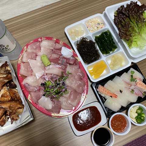 보이는 초밥은 6천원인데 가성비괜찮은거 같아요 살찌니까 오늘은 오븐구이랑 같이 껄껄.. 회가조금남아서 다음날 회덮밥도 해먹었어요 꿀맛ㅎ