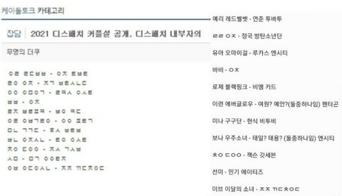 디스패치 2021연예설 연애설 공개할꺼 초성으로 공개했길레 맞춰봄