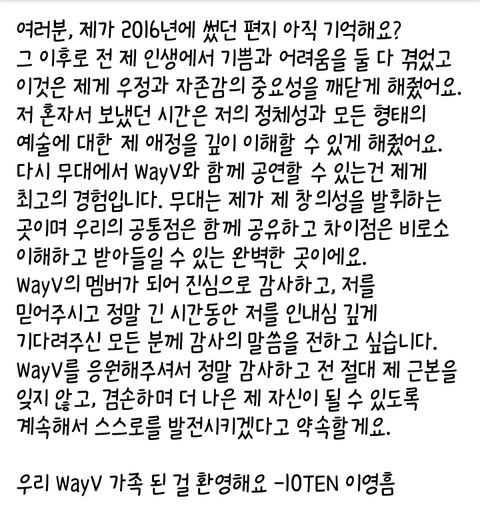 해석은 밑에ㅇㅇ 웨이션 대우 잘 해라 슴아 너네 ㅈ 대로 구성만 맞추듯이 넣었다 뺐다 하지 말고 그리고 웨이션도 엔시티면 못 박으라고ㅋㅋㅋㅋ 어중간하게 발 거치고 있으니까 애들 무시하는 새끼들 조카 많잖아 시 바 포카 애들 나오면 망했다고 씨부리는 것들, 버스 취급하는 것들ㅋㅋㅋㅋ 물론 아닌 애들도 있겠지 웨이션 존재 소중하다 지켜라 슴아