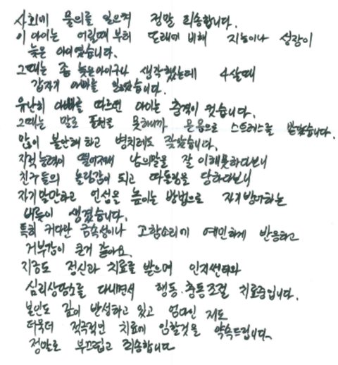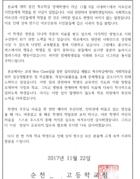 학생의 어머님도 사과문을 쓰셨어.
