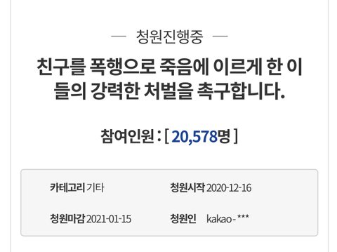 <<친구를 폭행으로 죽음에 이르게 한 이들의 처벌을 강력히 촉구합니다>>