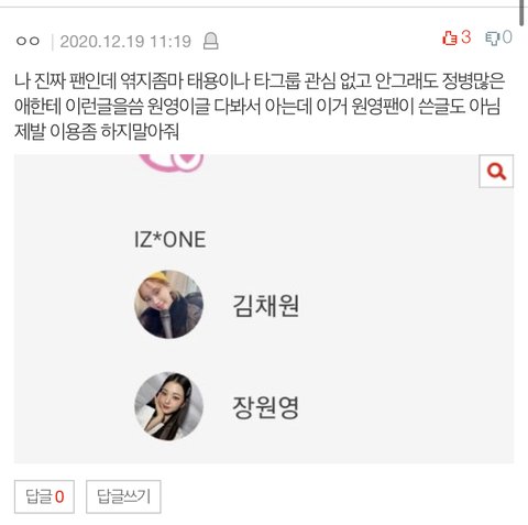 태용팬 진짜 양심 빻았네 장원영패다가 태용 띄우려고 17살짜리 애 이용하는거 실화냐? 장원영은 어제 실검들고 난리였는데 태용은 어디서도 반응없고 그분량에 실트조차 못듦 양심 좀 있어 벌레앰아