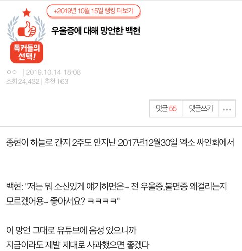 종현 때 백현 무슨 생각으로 입턴거지