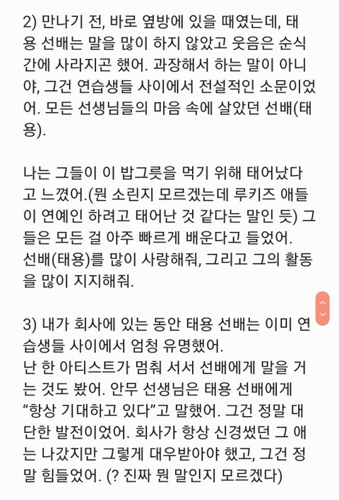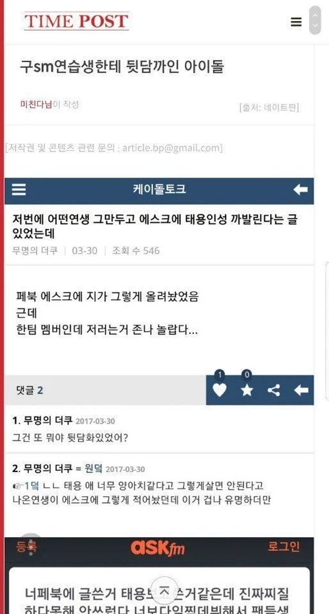 참고로 내가 오늘 낮에 마지막으로 본 댓글은 태용이 파란 배경 사진이랑 같이 올라온 댓글이었고 그 위로 지금 베플들 쭉 달린 거 보니까 갤에 좌표 찍힌 거 확실한 거 같다 조회수도 적고 별 관심도 못 받았던 글에 갑자기 저렇게 댓글 달고 그 댓글 추천수가 수십 개다? 너무 투명하다