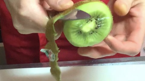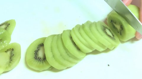 키위의 껍질을 잘 제거하고키위는 귤과 같은 두깨로 슬라이스 한다.