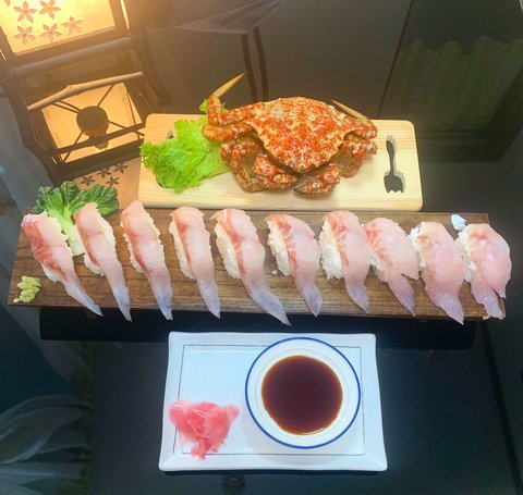 일본에도 귤이 있어서 다행이다.농어 초밥 & 밤게