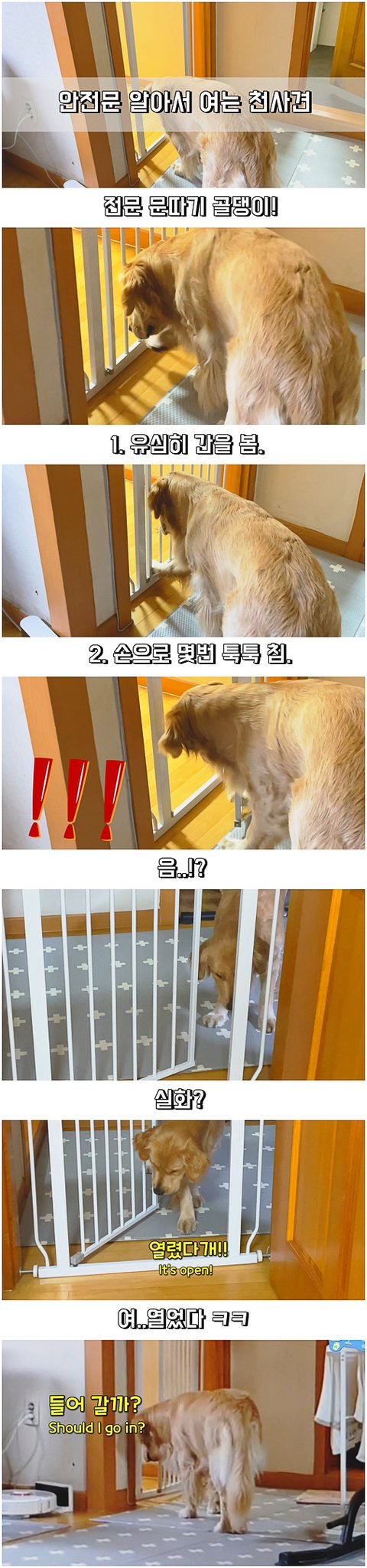 안전문이 완전히 안잠겨 있었나 ㅋㅋ 근데 꽤 똑똑한데?