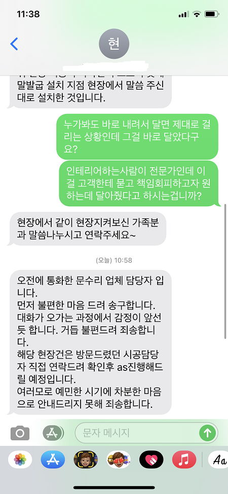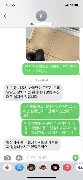 아무리 생각해도 바로 밑에다가 조금만 내려서 시공하면 될거를 그런식으로답변하고 갔다는게 이해가 안가서 바로 시공담당하는 사람 번호를 받아서문자로 남겨놨습니다.