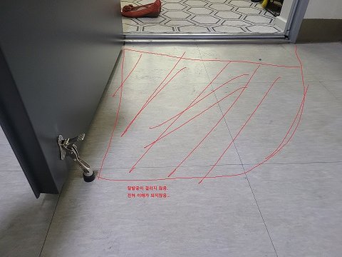 그래서 대문을 고정시킬 수 있는 말발굽도 함께 교체했구요.그날 저녁 방문드렸는데 양손에 짐이 많아서 말발굽으로 고정시키려고 내리니까말발굽이 고정이 안되고 바로 문이 닫히더라구요.