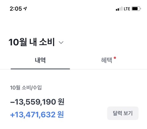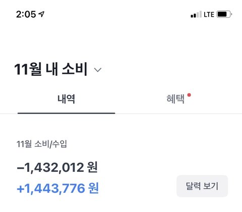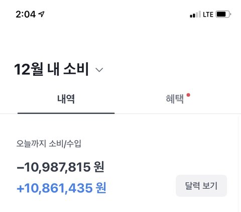 토스로 조회해보면 11월 아파서 아무것도 못한 달 빼고는 전부 1000만원 가량.. 소비를 했더라구요