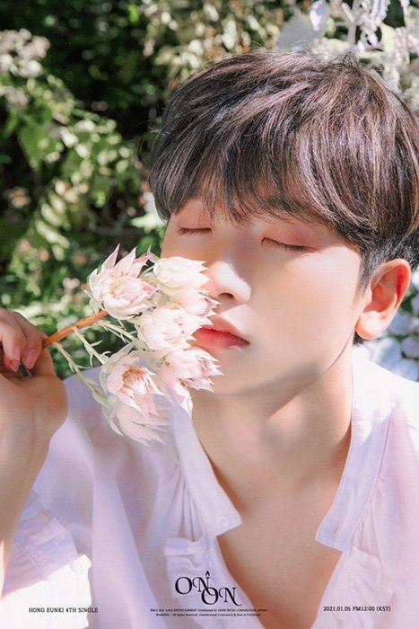공개된 이미지 속 홍은기는 눈을 감고 꽃내음을 맡으며 청순 아련한 비주얼을 자랑, 전 세계 팬들의 마음을 녹이고 있다.