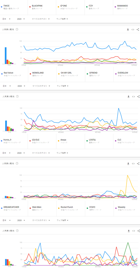2020년 일본에서 가장 많이 검색된 한국 걸그룹 TOP20